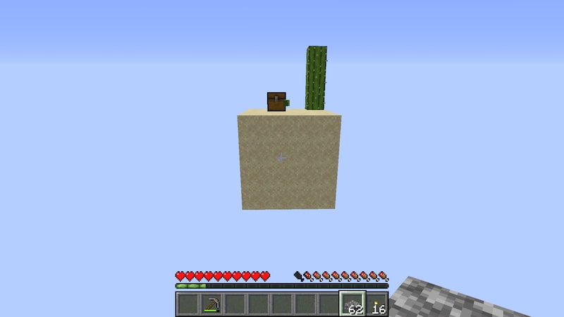 石が集まったのでハーフブロックにして道を作っていくと、サボテンがアイテム化していました。夜にエンダーマンがこの島に湧いていたので、おそらくエンダーマンの仕業。島に着いたときにはサボテンは消えていました。
