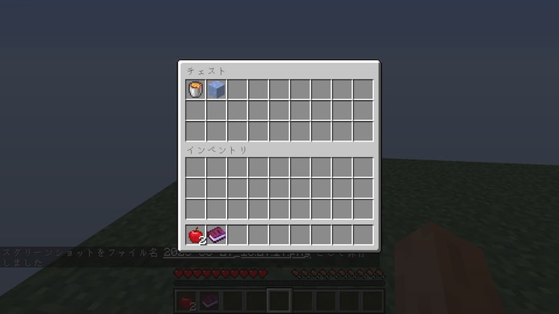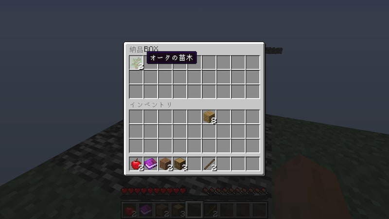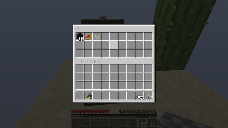 チェストの中身は、黒曜石10個、スイカ、カボチャの種でした。納品物の素材は一通りそろっています。