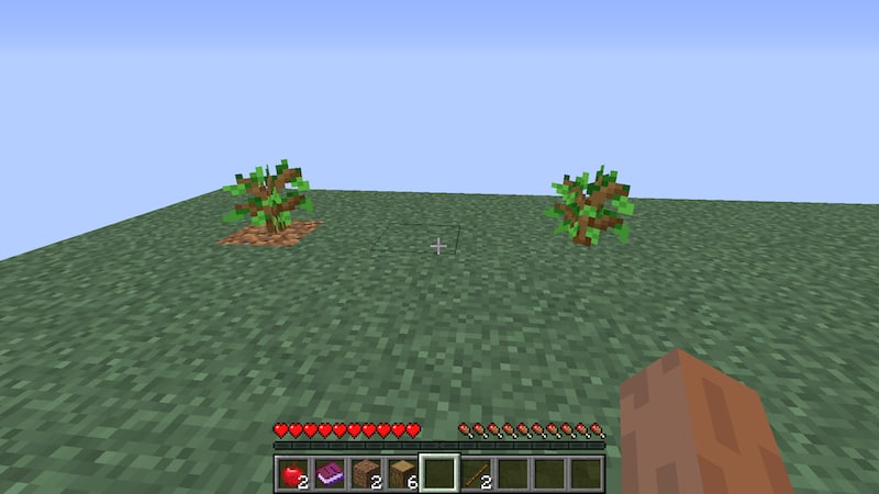 夜になりました。左側は溶岩で明るくなっているのはわかりますが、右側の苗木のあたりが明るいのはなんででしょうか?下にも光源になりそうなものはありません。謎です。