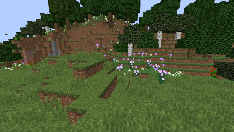 少し周りを歩いていると、花がたくさん生えているところを見つけました。この丘になっているところを掘って洞窟拠点を作りたいと思います。