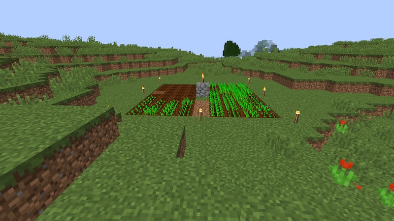 廃坑探検で食料不足になってしまったので、仕方なく小麦畑を作ることに。