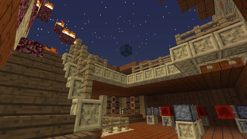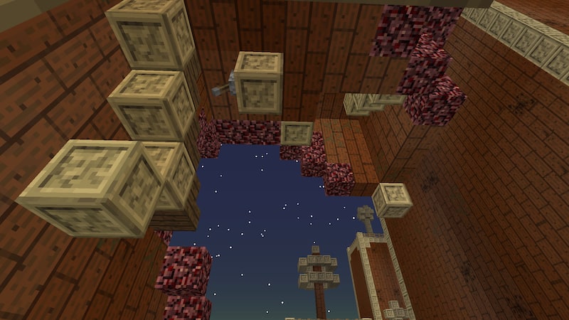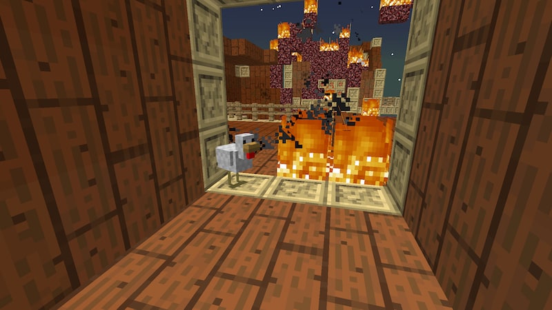 トラップですね。ネザーラックの間にレッドストーンブロックを押し込むと、たしか金ブロックとダイヤブロックが現れて、数秒後に爆発してガストが現れるというものだったと思います。