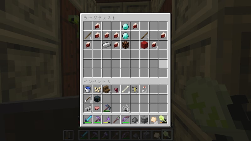 チェストにダイヤが入っていました。このケーキみたいなものも食料として結構使えます。