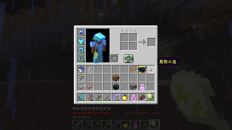 鉄インゴットと、ウルガストからもらった「焦熱の涙」かヒドラからもらった「焦熱の血」をクラフトすると「焦熱インゴット」ができます。