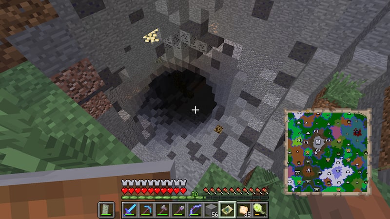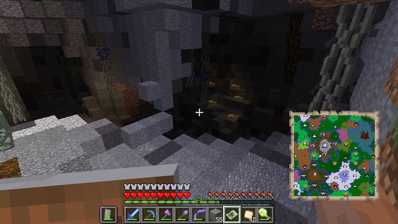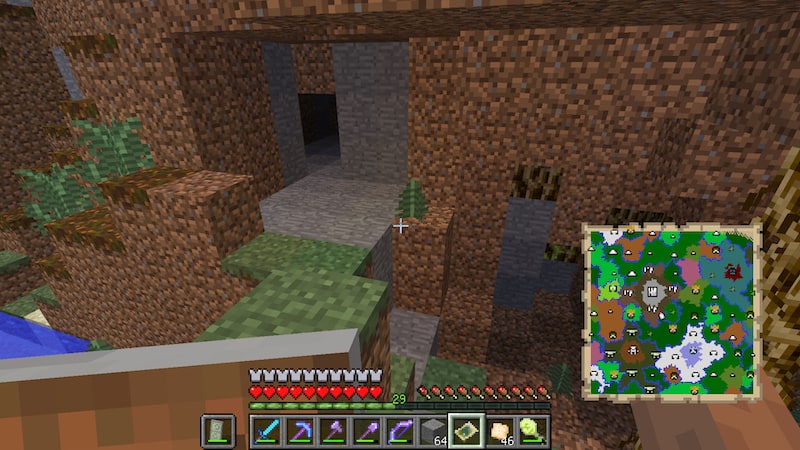 流石にもう限界なので、地図を見て山の上から階段掘りしました。すると洞窟に繋がりました。