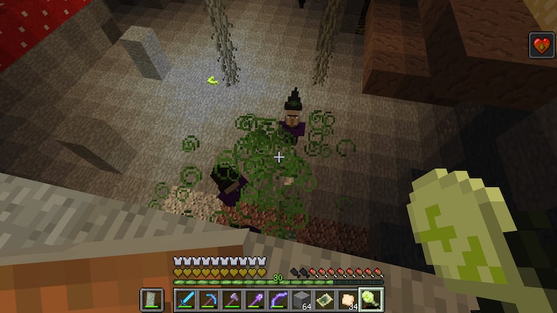 それにしても、この黒曜石の周りにウィッチが多いのは仕様なんでしょうか。スポーンがあるわけでもないのに10体近くいるので、弓がなかったら相当きついですよね。