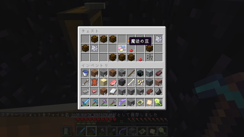 幸運3のツルハシで掘ったら、連鎖破壊Modに登録してあったのを忘れていて、ラピスラズリが104個も手に入りましたw。