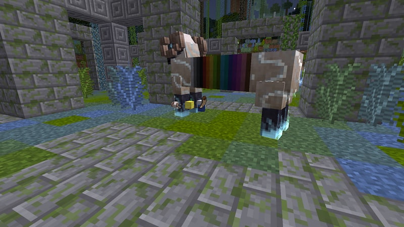すべての色の羊毛を持ってきたつもりでいましたが、霊羊の遺跡に到達した時に確認したら青がないことに気がつきました。青の羊毛はラピスラズリで染色してありましたが、拠点のチェストにおいてきてしまったようです。