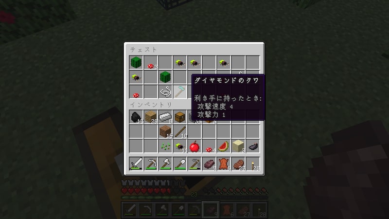 おっ!ダイヤのクワがあります。クワ自体は使いませんが、後で手に入る解体作業台を使うとダイヤが2個手に入ります。