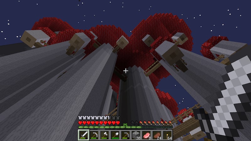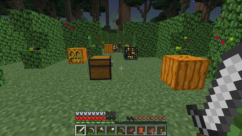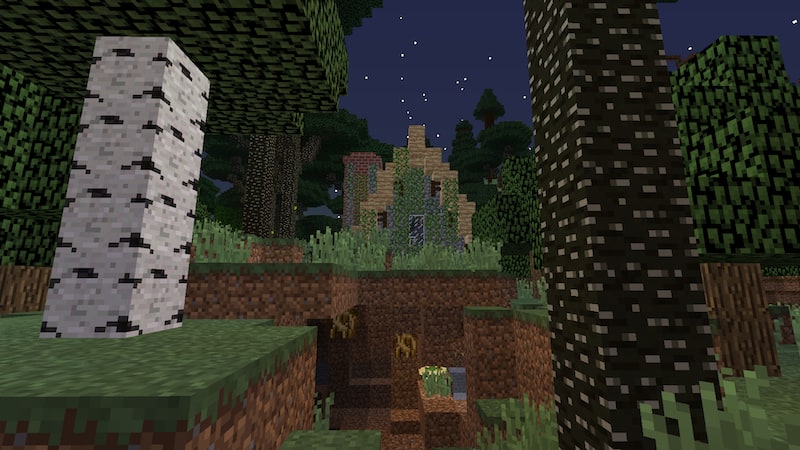 ドルイドの小屋です。スケルトンドルイドという魔法を使うスケルトンのスポーンがあります。結構強くて、油断するとすぐに負けます。近づいてウロウロしているとどんどん湧いてくるので、入り口から素早く侵入しスポーンを破壊します。