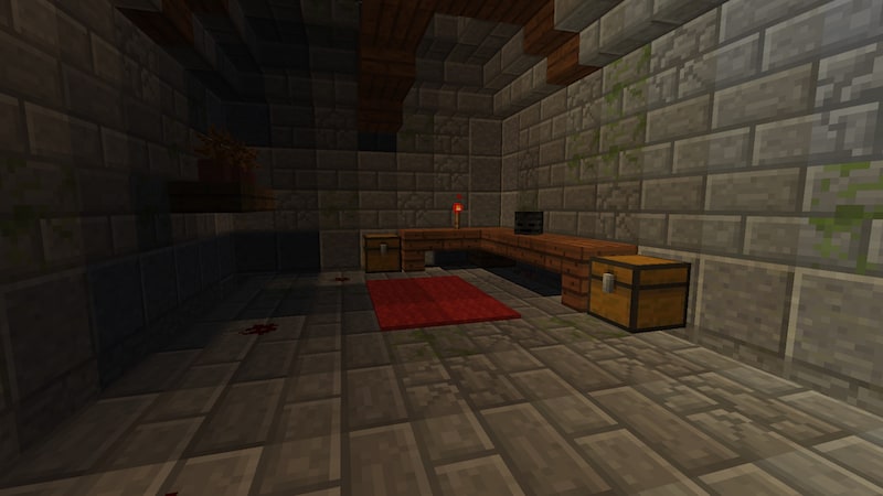 地下はこんな感じで暗いです。ウィザースケルトンの頭とチェストがあります。チェストには大したものは入っていませんが、罠が仕掛けられていることもあるので注意が必要です。