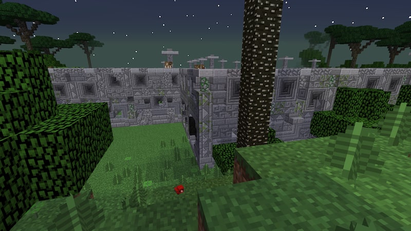 2つ目の生垣迷路を発見しました。今度はクモが湧くまで待ちます。20秒くらい待っても湧かなかったので、スポーンの上に屋根をつけて暗くしたらすぐに湧きました。