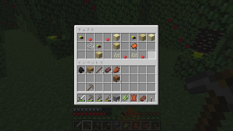 一通りチェストを回収し終わった状態です。手持ちはいっぱいですが、大したものはありません。