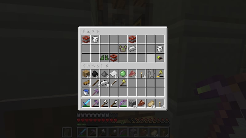 この部屋にはトリップワイヤーフックはありませんでしたが、下にTNTがあります。実はこのチェストはトラップチェストなので、知らずに開けてしまうと爆発します。