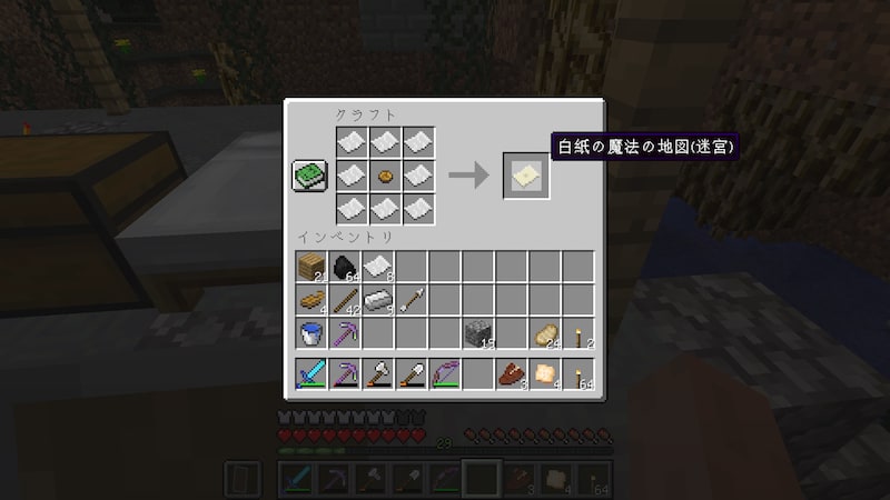 手に持って右クリックで、地図が書き込まれます。ラビリンスは結構入り組んでいるので地図を作るとかなり楽になります。