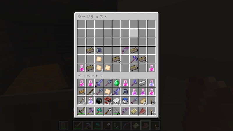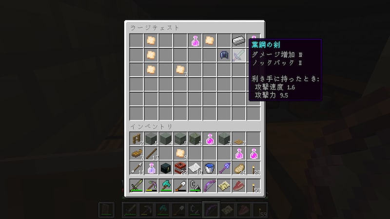 チェスト1つ目。無限がついている弓です。エンダーチェストもありがたい。