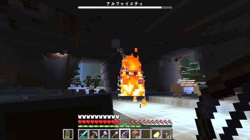 フレイムつきの弓だと、ノーダメージでアルファイエティを倒すことができますw。