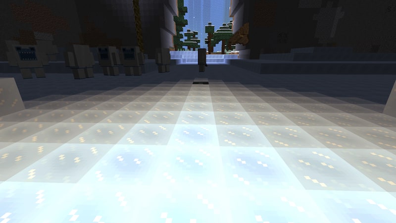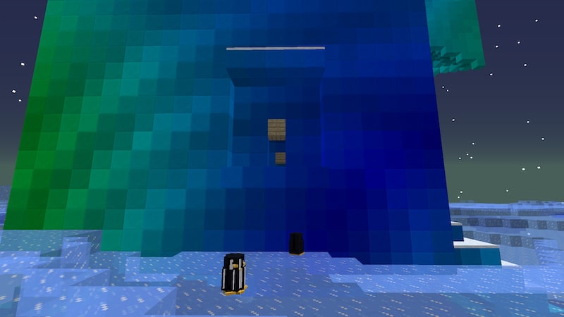 アルファイエティを倒し実績が解除されたので、雪の女王がいるオーロラの宮殿に向かいます。オーロラの宮殿はこの氷の上にあります。階段状にブロックを積んでいくのが楽だと思います。