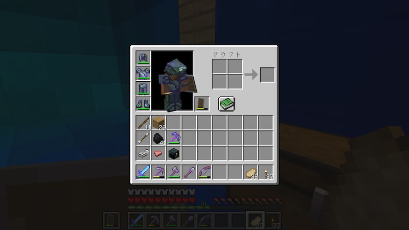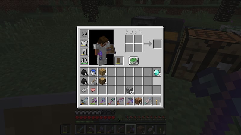 1つ目の亡霊鉱山(大)のチェストは大したものはありませんでした。ダイヤもなかなか見つからず諦めかけたときに数個発見し、幸運2のツルハシで採掘して10個だけ手に入れました。それにしても少ない…。