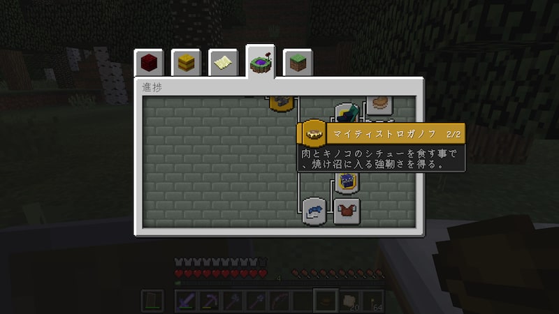 お腹が減ったら「ミーフストロガノフ」を食べようと思っていて忘れてました。実績を解除するために必要なので、亡霊鉱山の突入前にムシャムシャ。