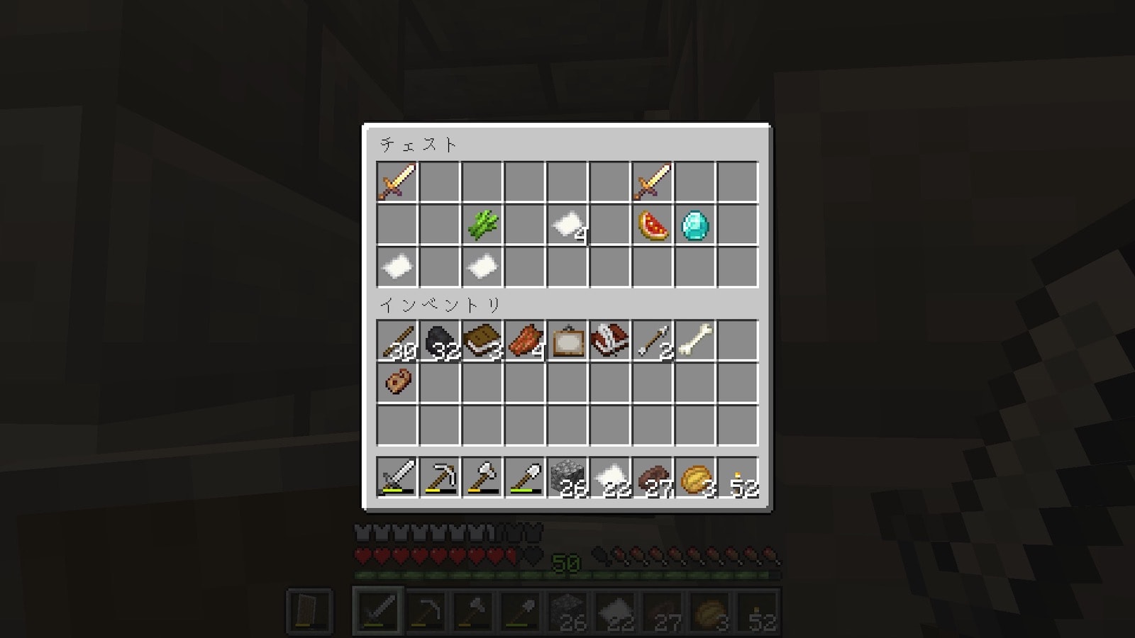 1つ目のチェストにダイヤが入っていました。結局はダイヤ装備が一番使いやすいので、ダイヤはありがたい。