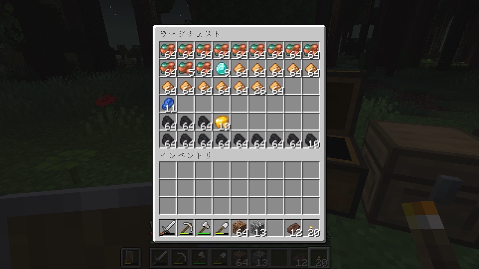 これならいけると思い採掘を始めましたが、ちょこっと取っただけでここまで集まりました。鉱石を全部回収して「こんなに集まりました!」ってやりたかったのですが、まだ1割も取っていない状態でこれです。