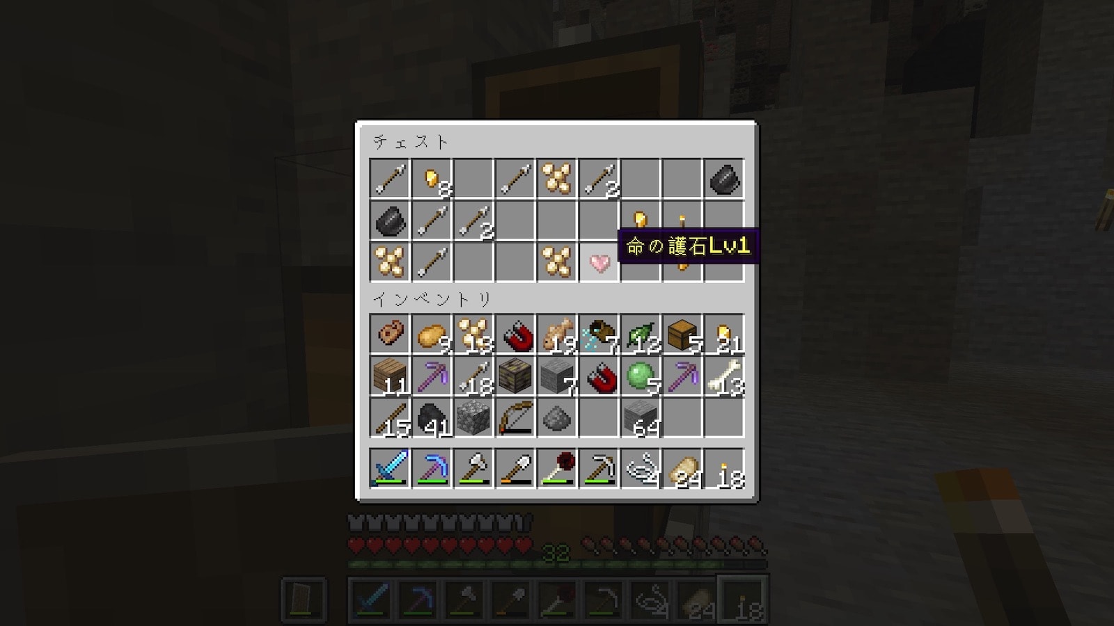 命の護石。一度だけその場で復活できる不死のトーテムに近いアイテムですね。回復量とかバフが違うのかな?