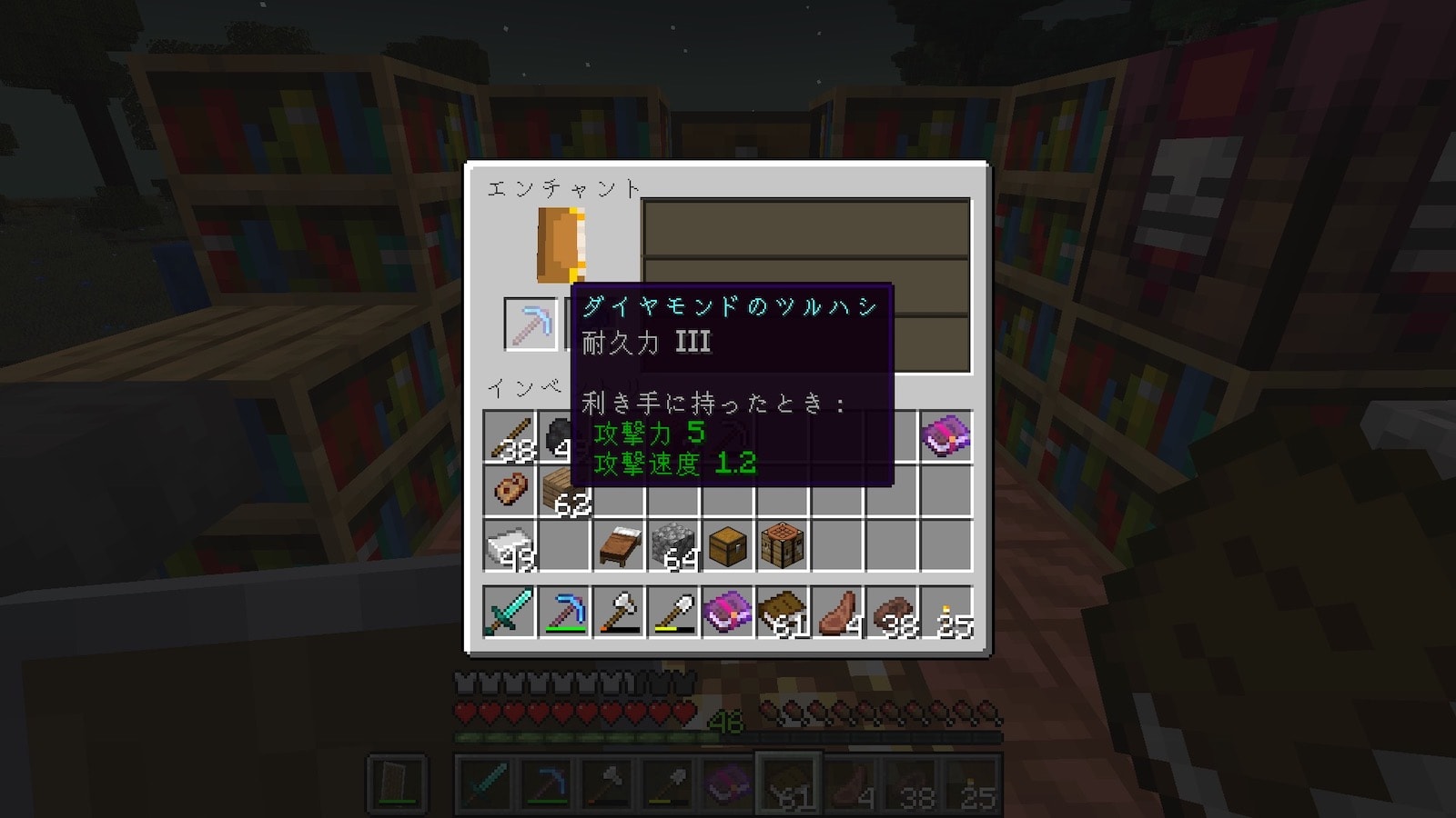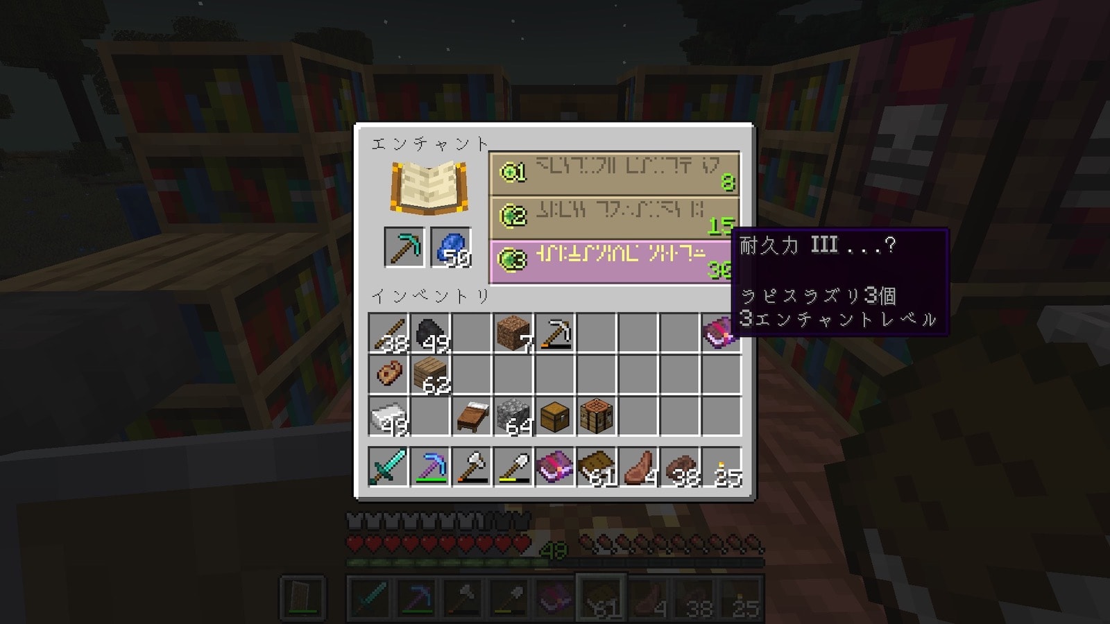 ダークタワーにブレイズスポナーがあったし、確かどこかのダンジョンのチェストでブレイズパウダーが手に入ったはずなので、それまでエンダーチェストはお預けみたいです。