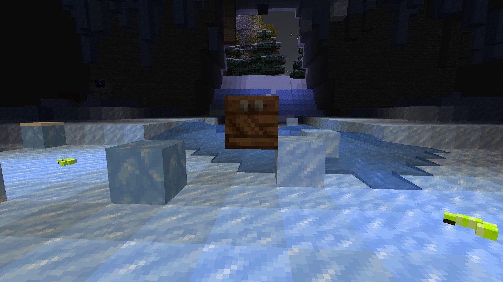 氷溶け出してるな。こんなに氷が溶けだしていた記憶がないので、以前の黄昏の森のページを見てみると、そもそも明かりを置く必要がないくらい明るかったです。黄昏の森はいつの間にか「夜の森」になっていたようです。