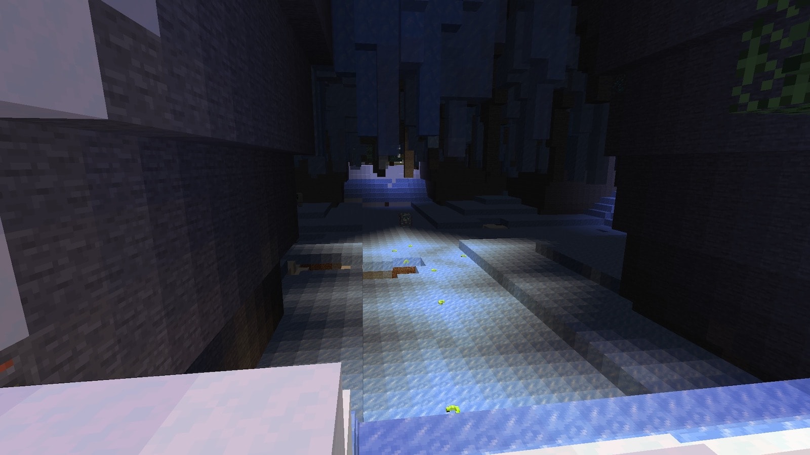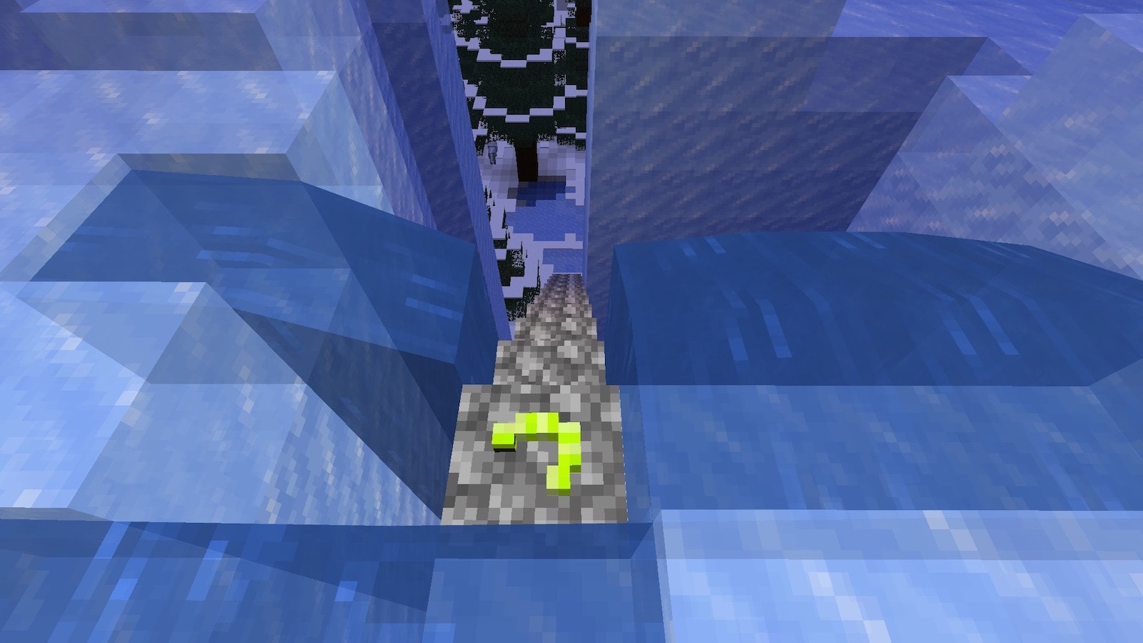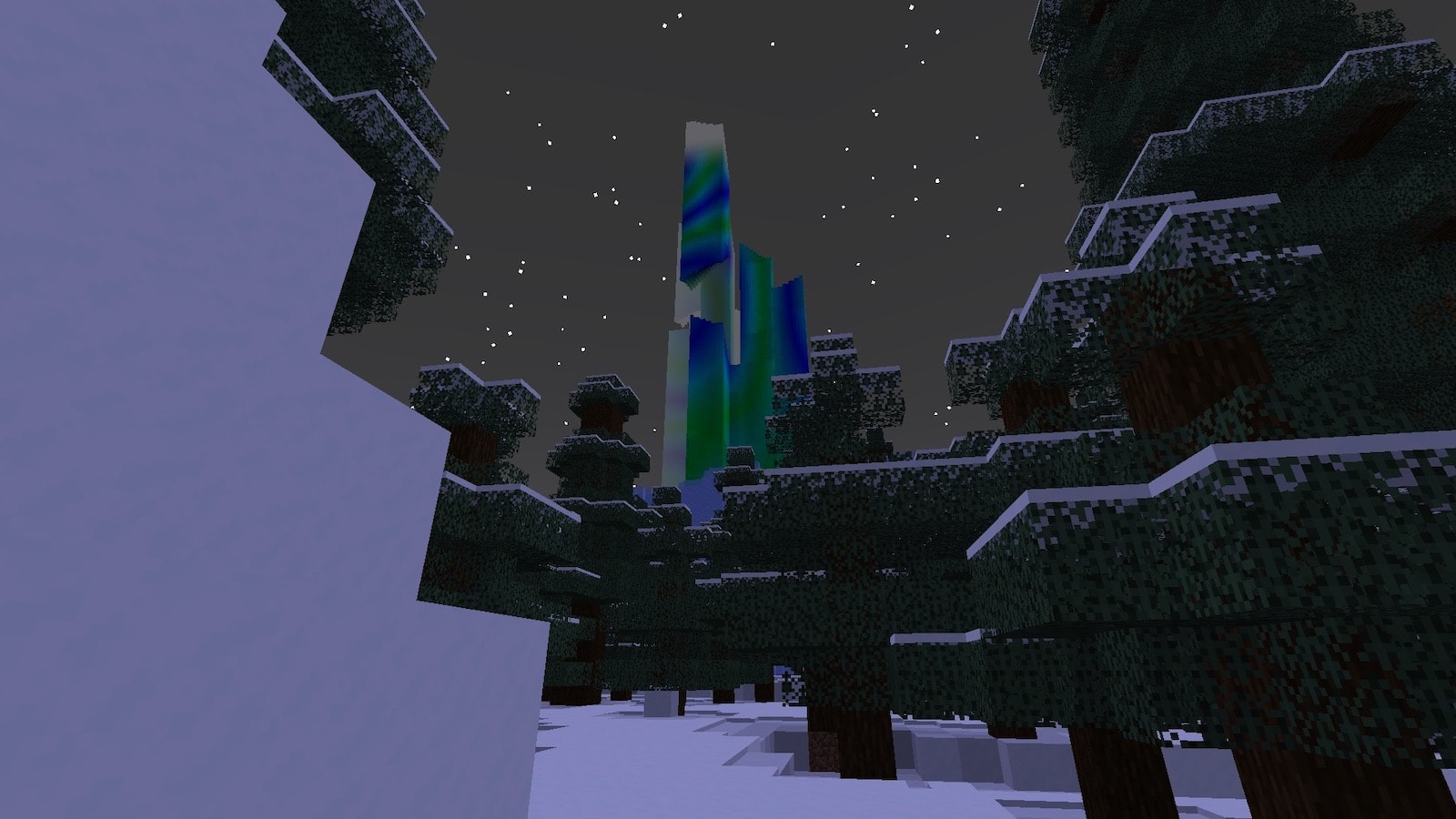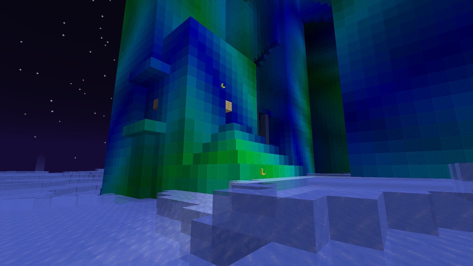 描画距離12チャンクだと、下からでもオーロラの宮殿が見えます。オーロラの宮殿は氷の山の上にあります。