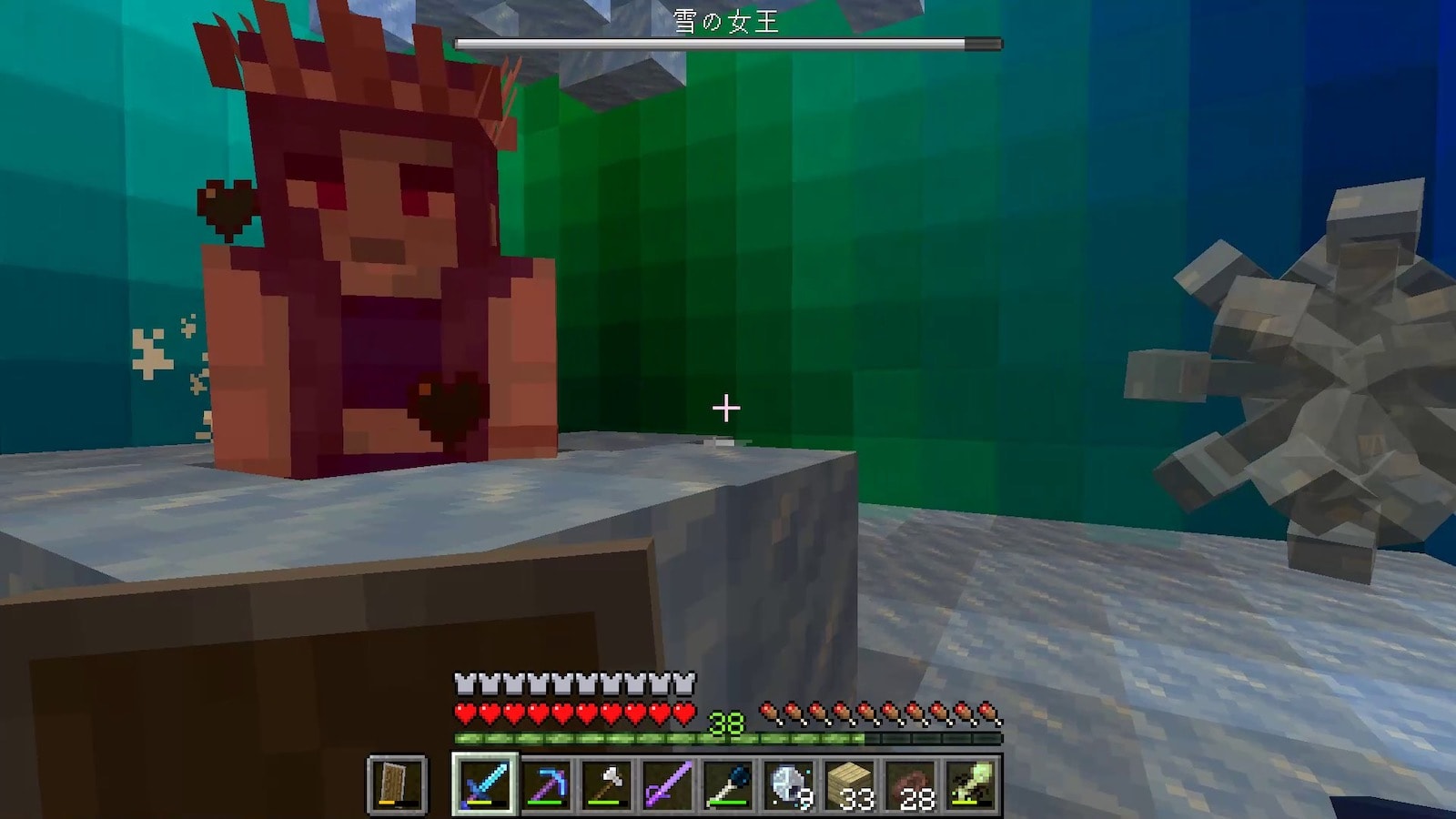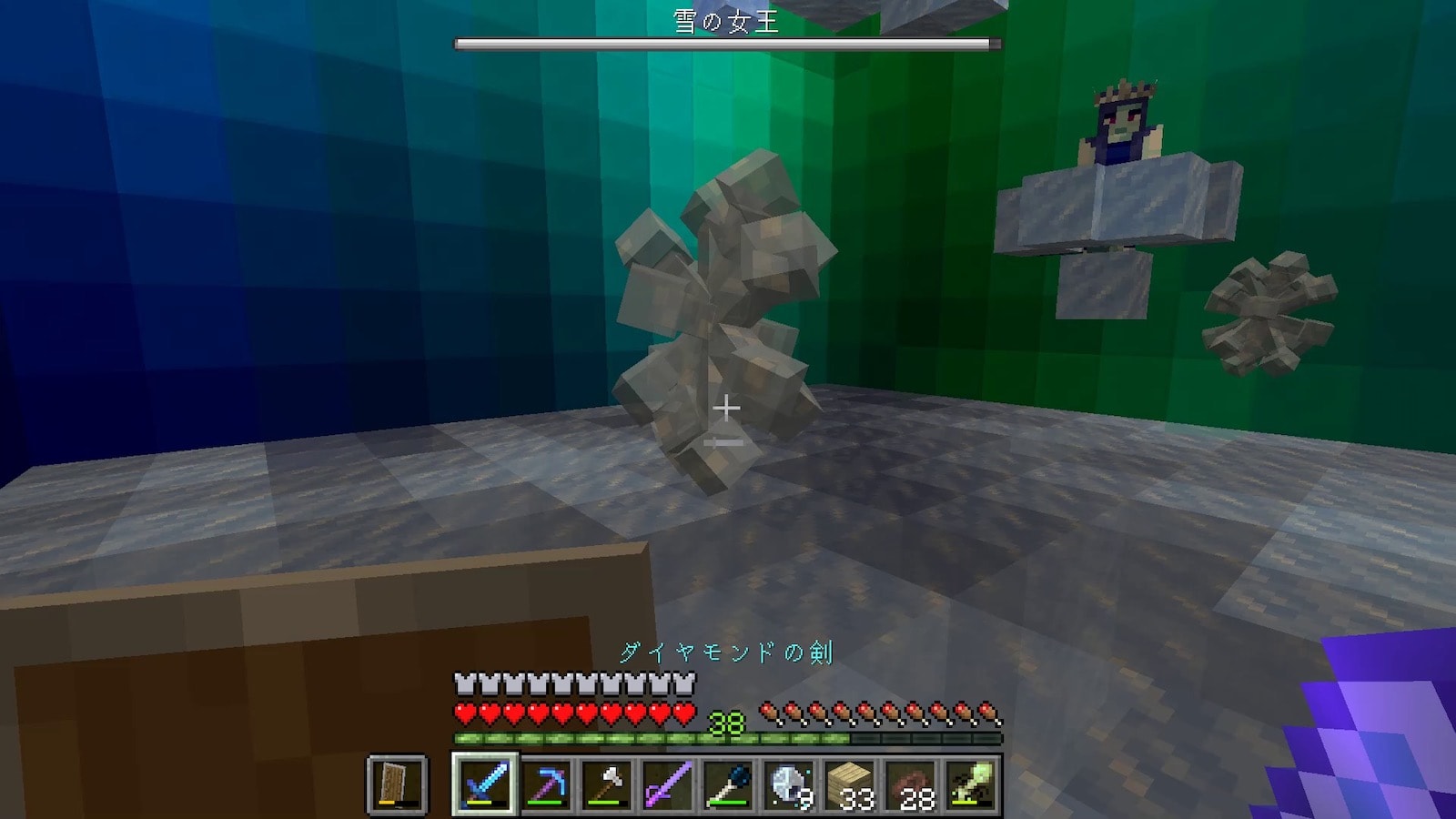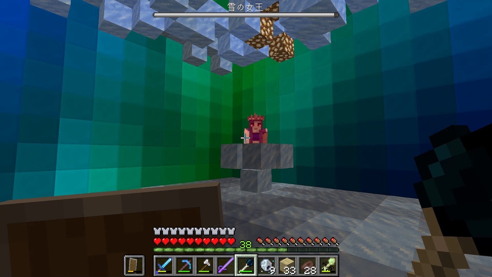 壁の素材のオーロラブロックはめちゃくちゃ硬いのですが、このオーロラの柱はすぐに壊れます。昔のバージョンはこの柱も硬かった記憶があります。