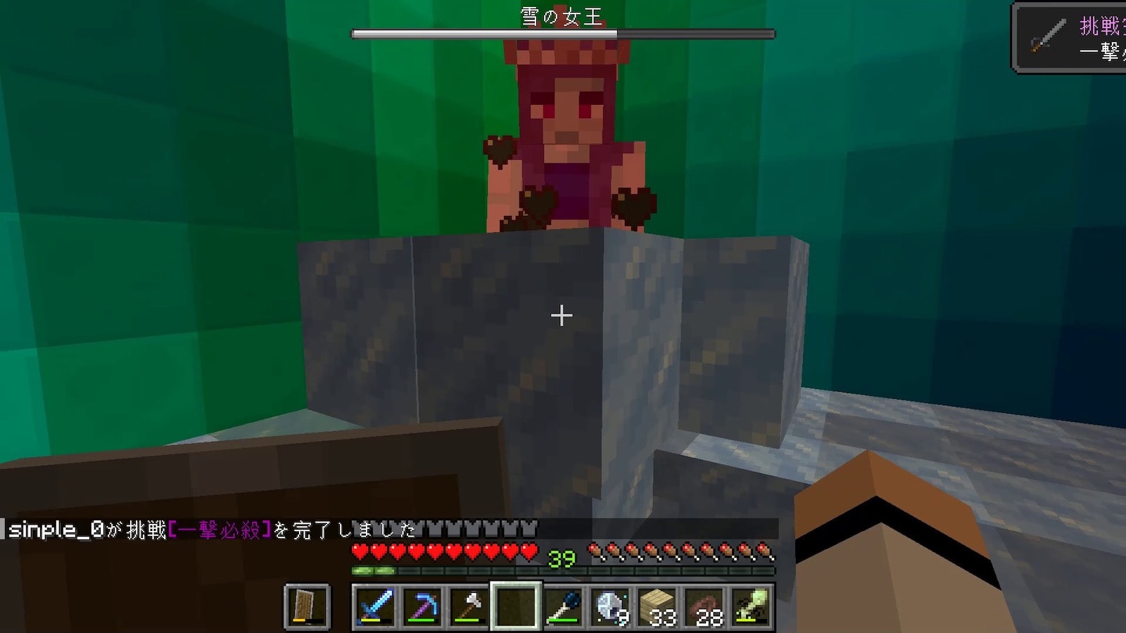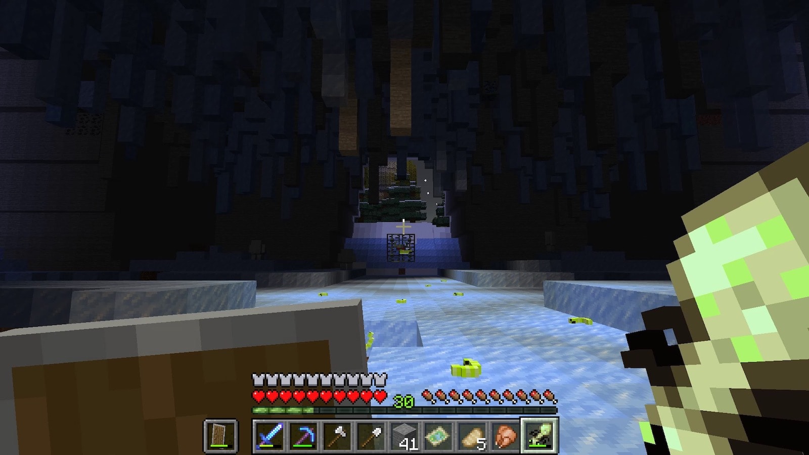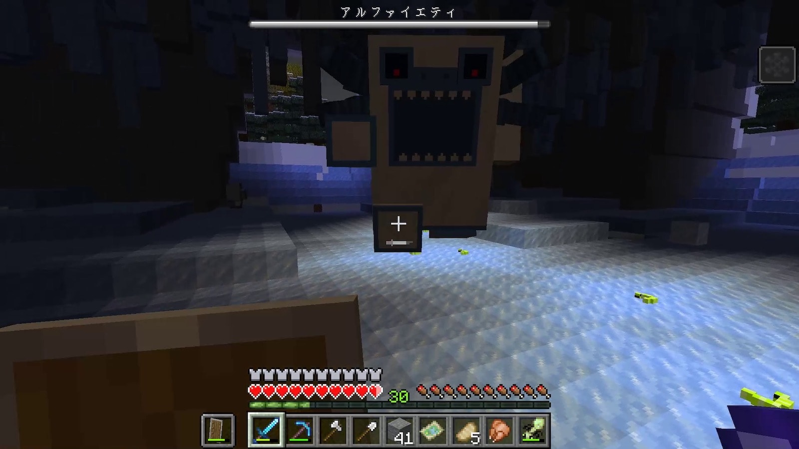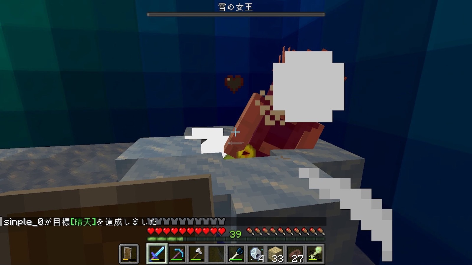 壁の素材のオーロラブロックはめちゃくちゃ硬いのですが、このオーロラの柱はすぐに壊れます。昔のバージョンはこの柱も硬かった記憶があります。