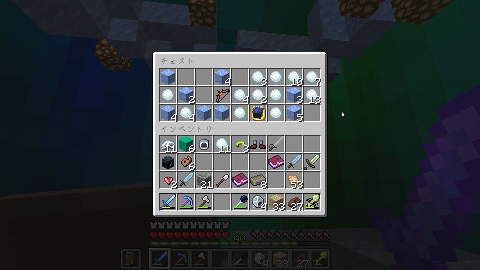 いきなり女王月光虫ゲット!しかもブレイズパウダーもセットです。これでエンダーチェスト作れる。