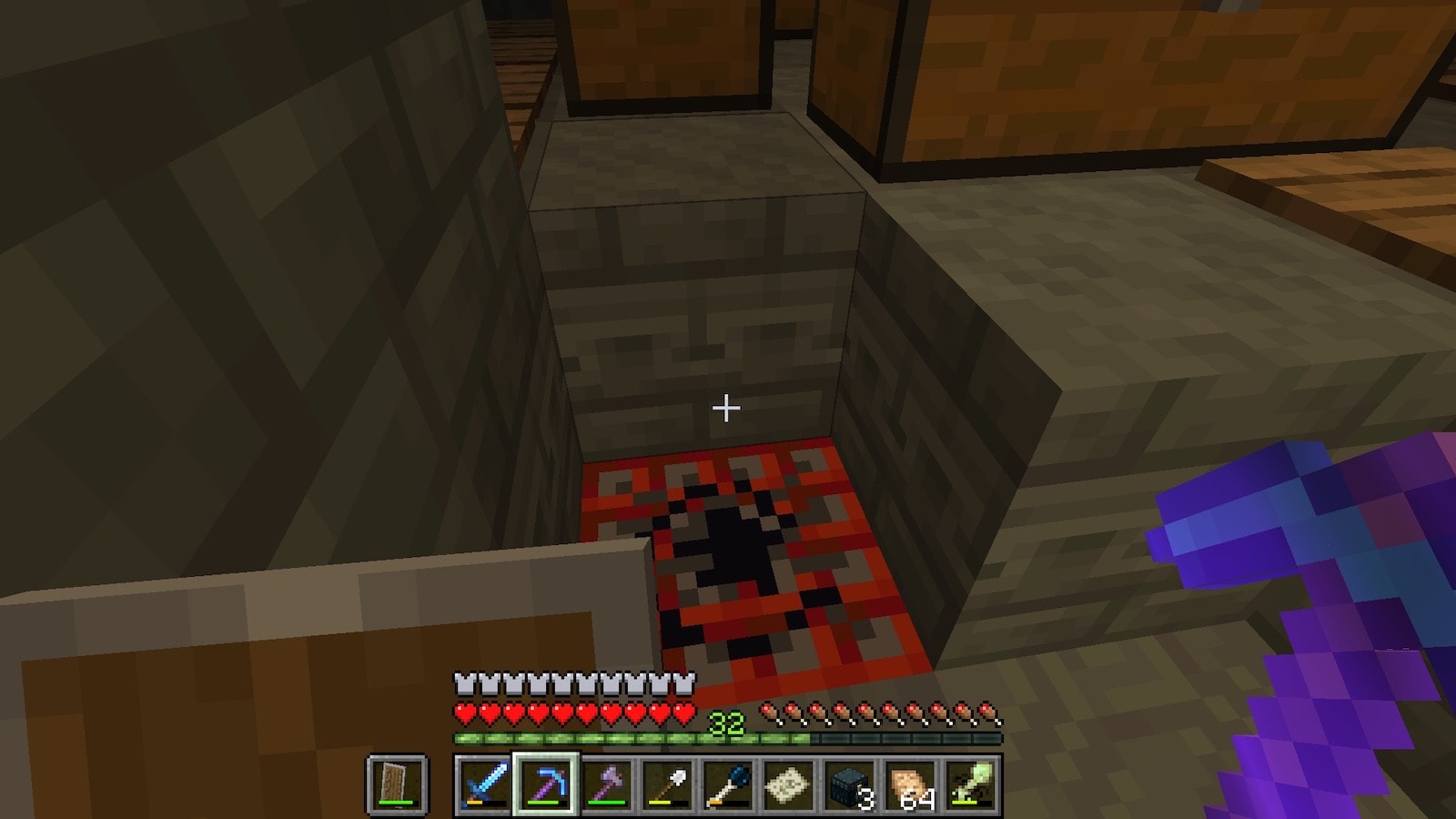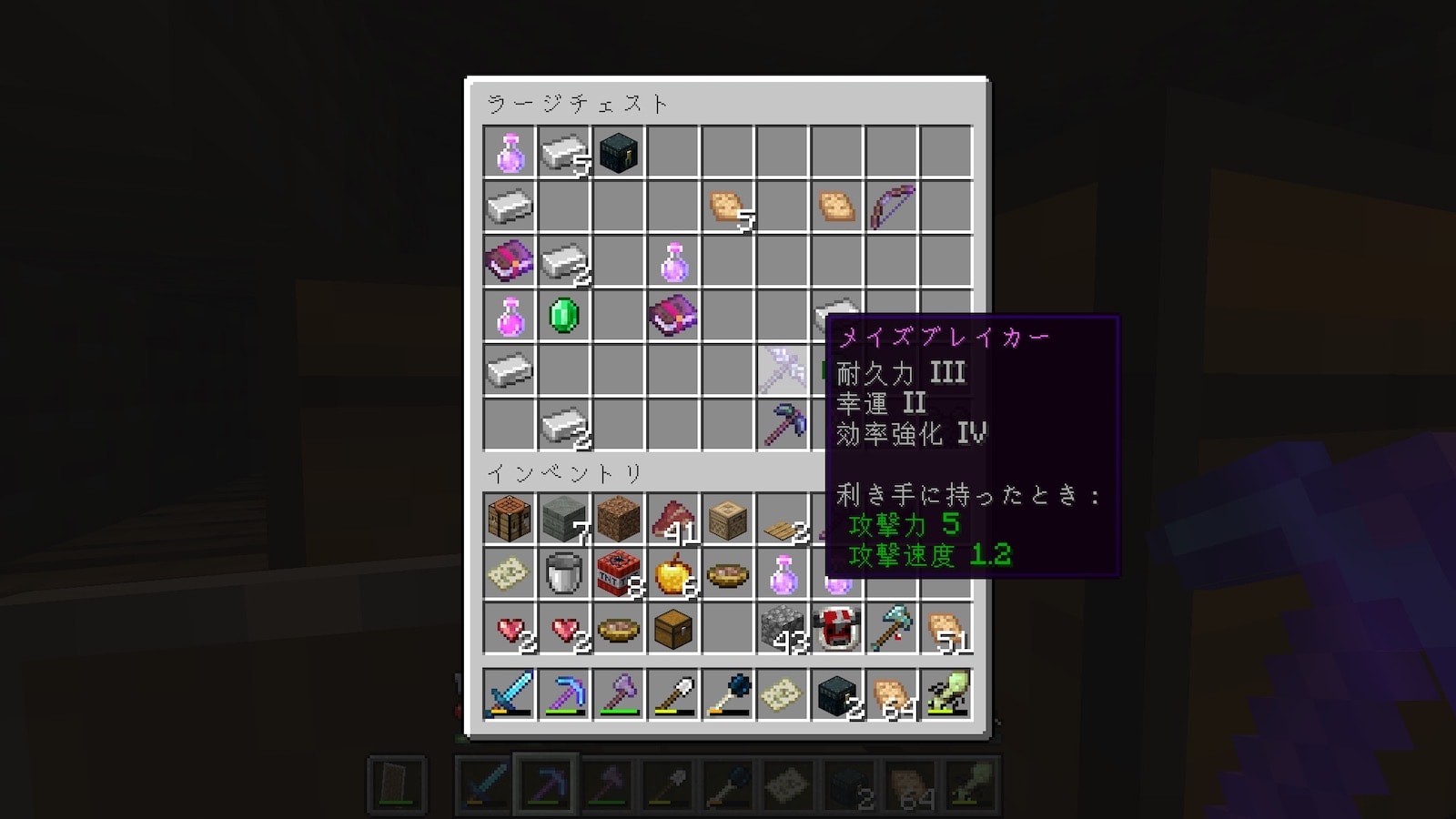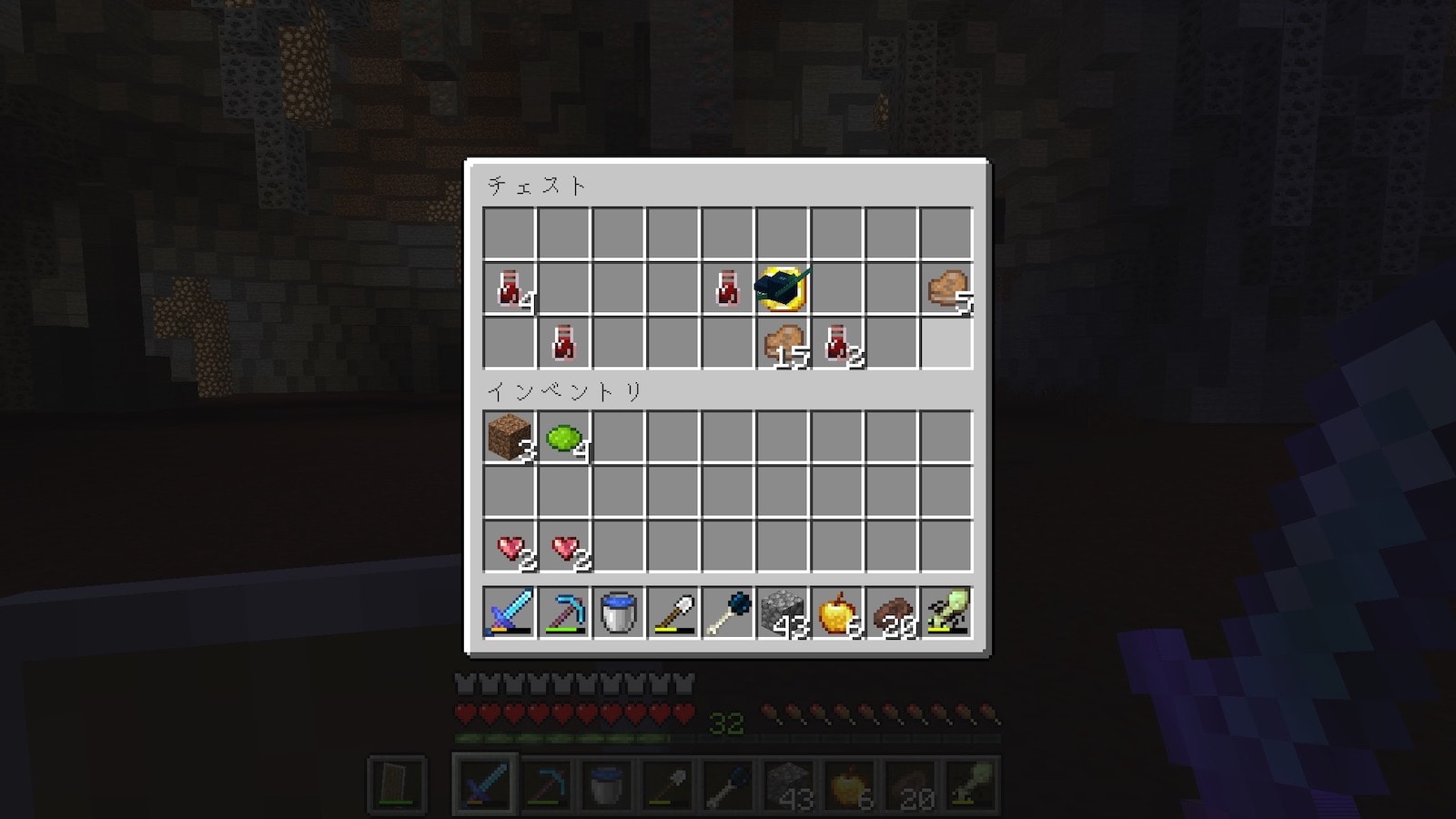 もしかすると叩いただけで爆発するTNTがあるかもしれないので、TNTを壊さずにチェストを開けます。