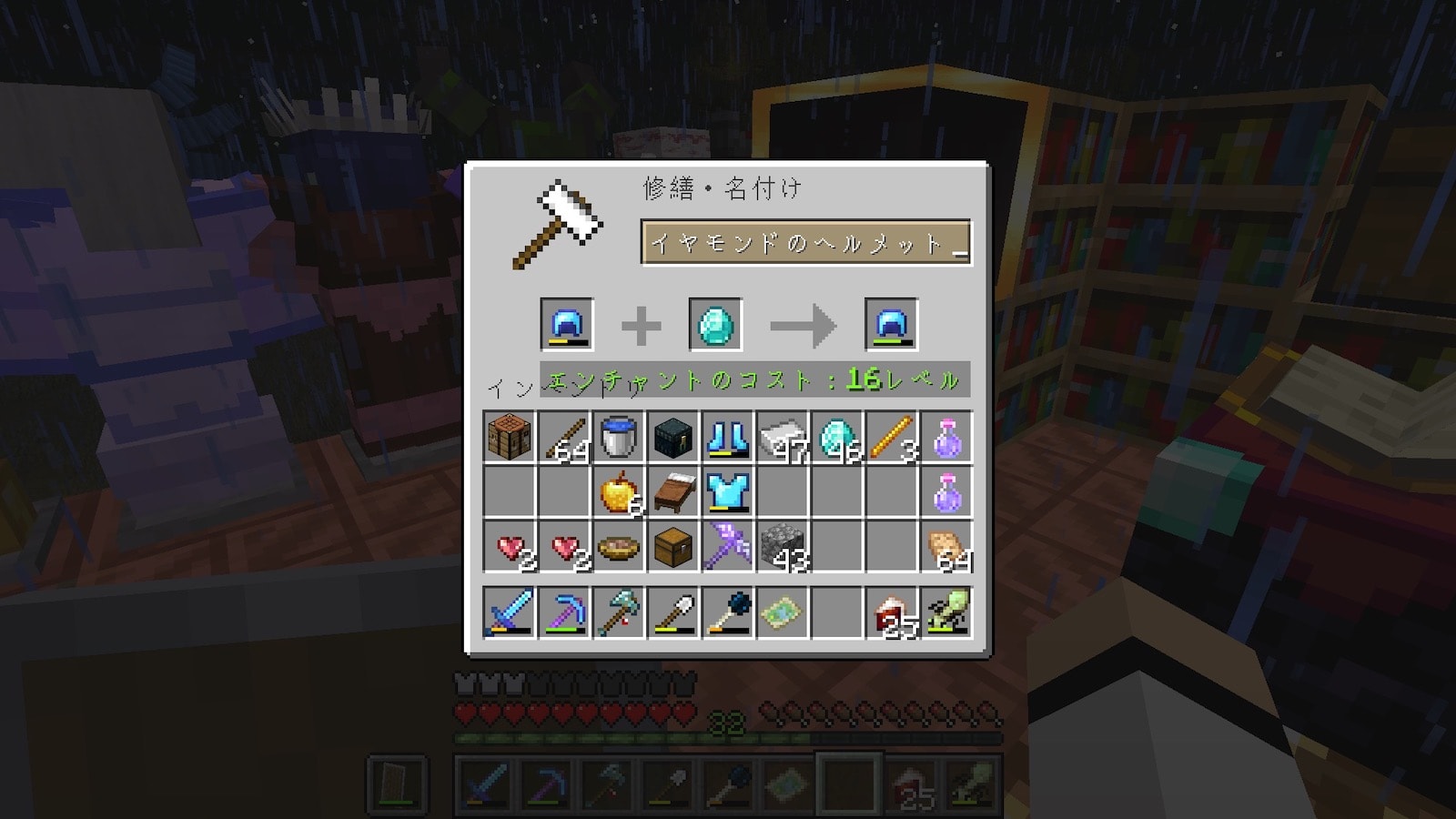 拠点に戻り、ダイヤ装備を修理しようとしましたが、使用するレベルがめっちゃ高くなってます。これは無理だ。
