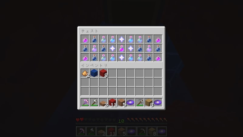 チェストの中身はポーションです。ポーションってあんまり使わないんですよね。