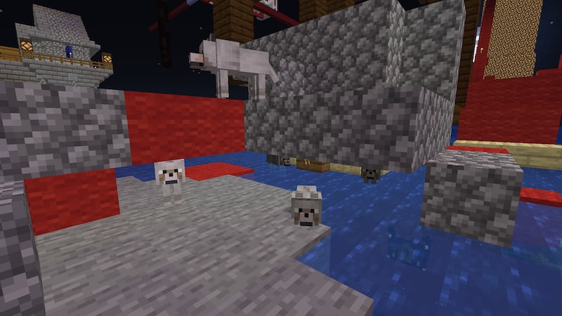 攻略を終えて下に戻ってくると、氷島から落下したオオカミたちがたくさんいました。攻撃はしてこないのでそのままにしておきます。なつかせて連れて行くのもあり?