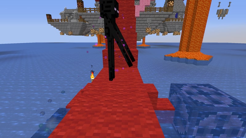 島に近づいたら、島から少し離れた足場にエンダーマンが湧いていて、気がついたらそこら中溶岩だらけになっていました。