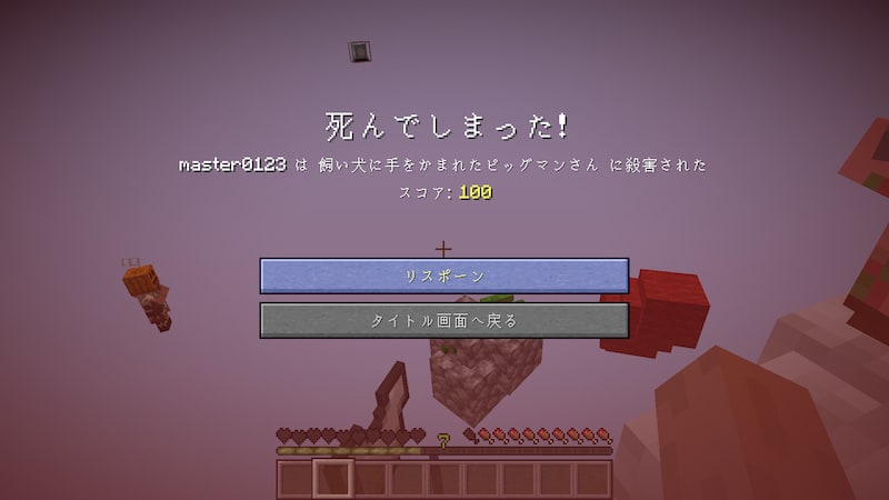 画像には収めていませんでしたが、恐ろしいのは「飼い犬に手をかまれたピッグマンさん」です。オオカミに乗ったゾンビピッグマンの子供ですが、動きが異常に速く、攻撃を受けると一撃でやられます。