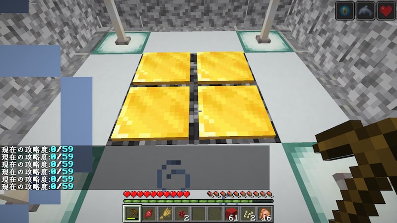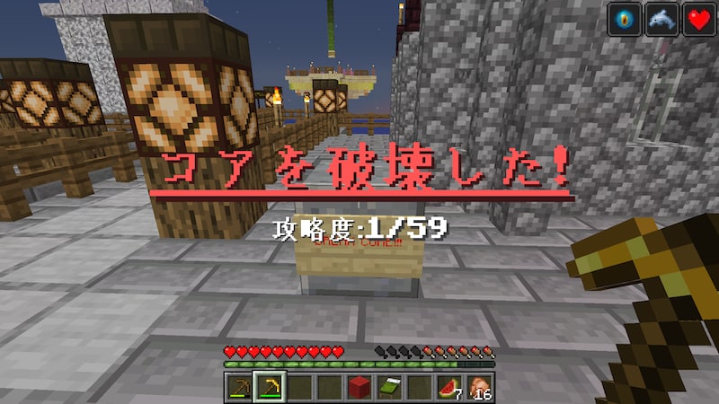 ダイヤブロックの上にビーコンみたいなものが乗っかっているブロックを壊すと、このように攻略完了になるようです。わかりやすい。全部で59個あるみたいなので、結構長い間楽しめそうです。