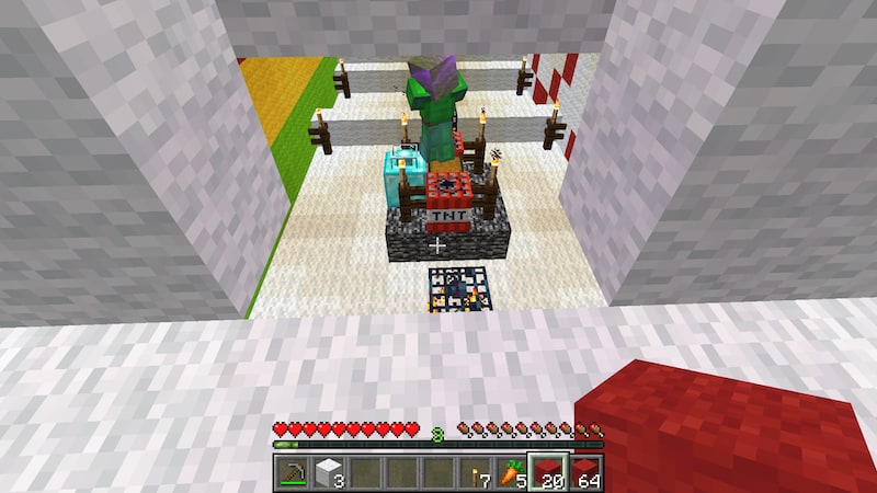 前回は、金ピカクリーパーを攻略し、小さな赤い島がTNTで跡形もなく消え、噴水島で挫折しました。